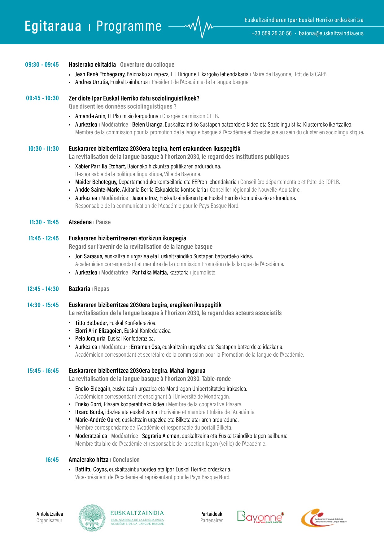 Euskararen biziberritzea Ipar Euskal Herrian + Ajouter à mon Agenda Google + iCal / Outlook export Date Juin 21 2024 Expired! Heure All Day Plus d'Infos Lire la suite Lieu Herriko Etxea Baiona Organisateur Euskaltzaindia Lire la suite Partagez cet événement